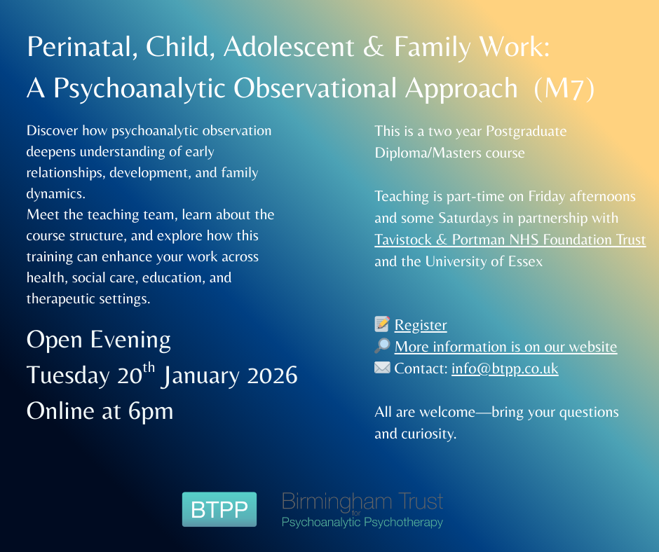 Venue: Birmingham Trust for Psychoanalytic Psychotherapy
